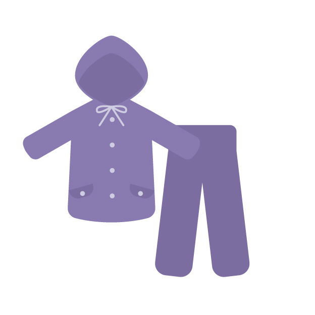- レインカバーと透明サンバイザー、長靴を履くと安心・安全