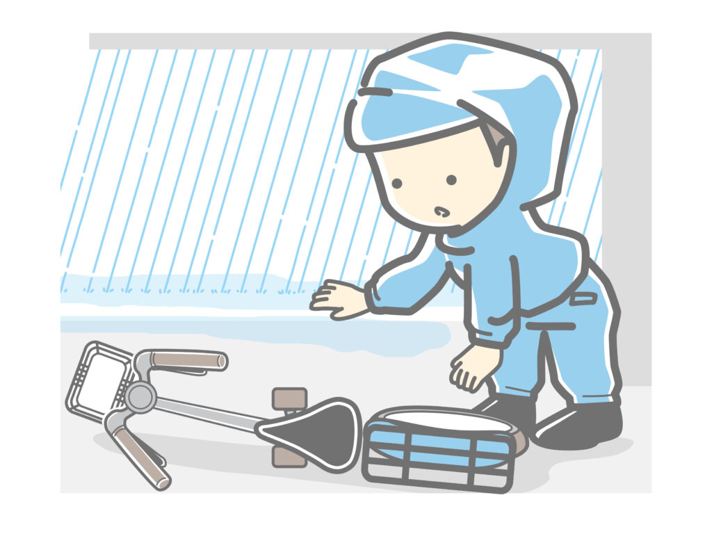 - 雨の日はマンホールや急ブレーキを避け、ゆっくり漕ぐ