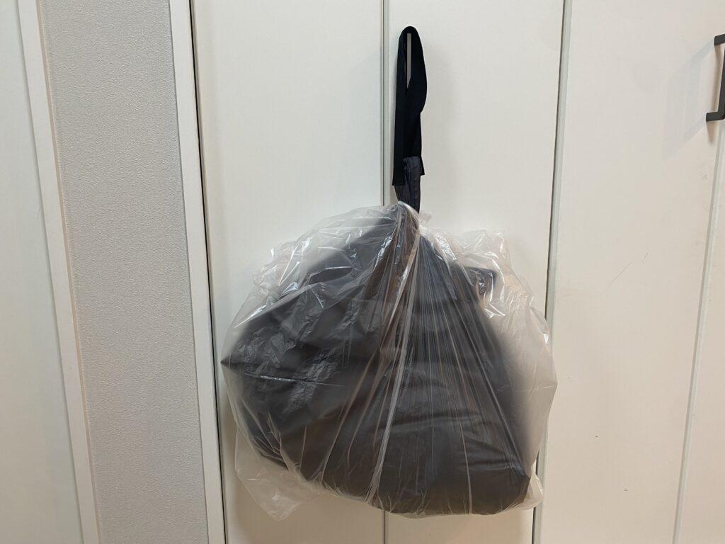 - お布団バックには90リットルのごみ袋で簡易カバーを作成する