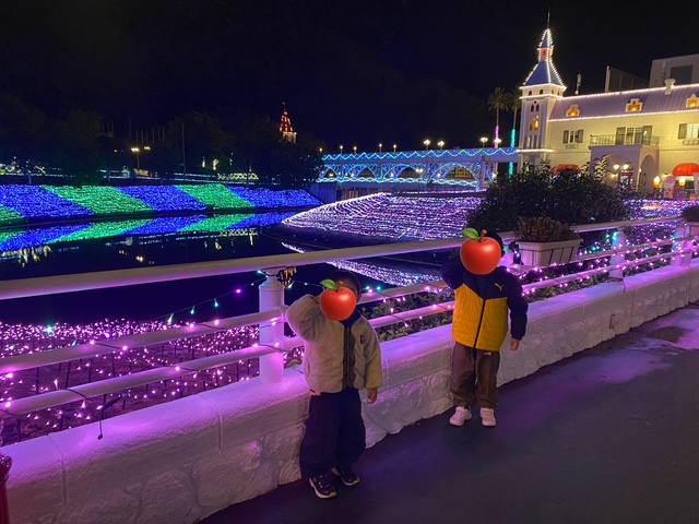 1日遊びつくしたあとのイルミネーションは大人もこどもも癒しの時間になります。